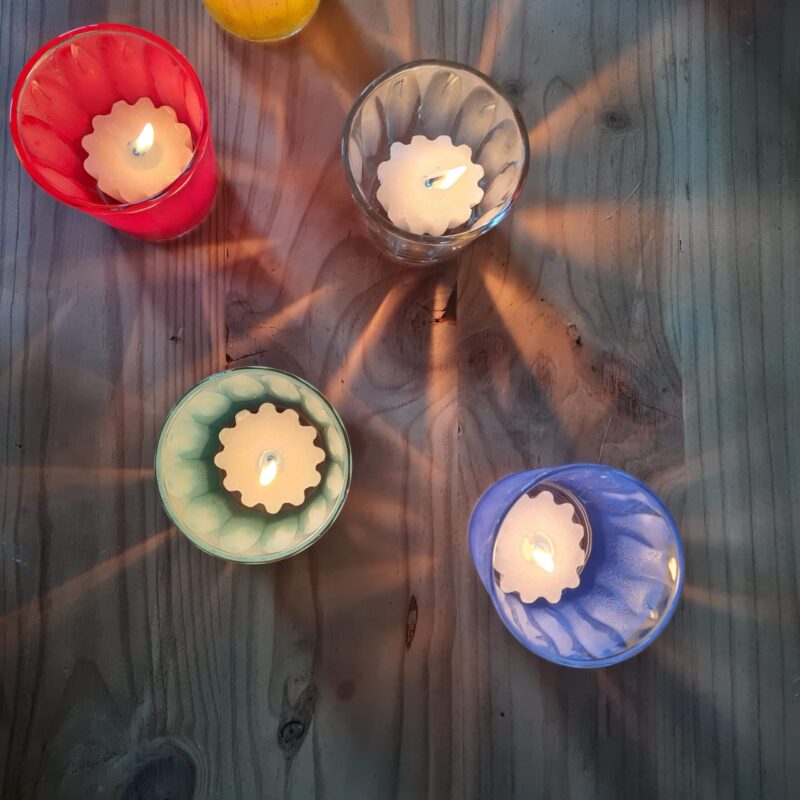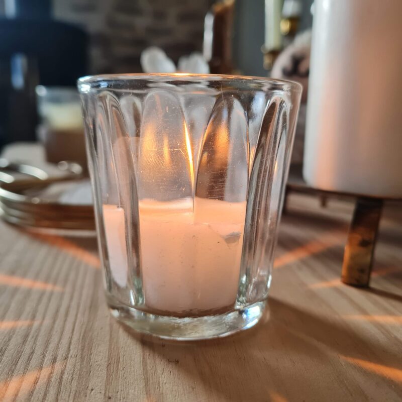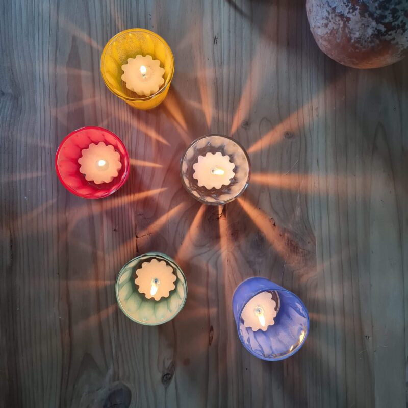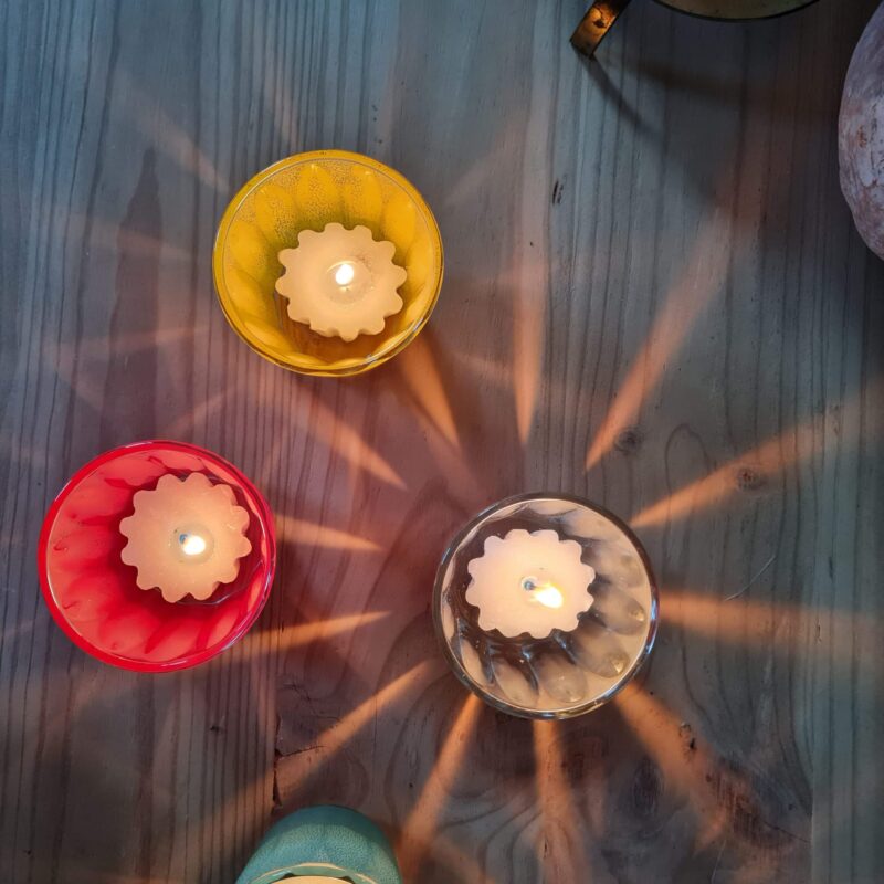 Leurs cannelures font refléter la lumière de la flamme. Pour que votre lumignon dure plus longtemps, nous vous conseillons d’utiliser les pains d’illumination plutôt que les bougies chauffe-plat. Une petite goutte d’eau au fond du verre vous facilitera le nettoyage de la cire fondue.