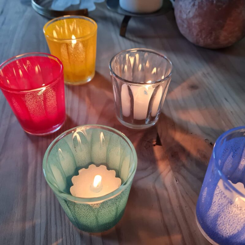 Lors de cette fête, les lyonnais disposent ces verres photophores éclairés par une petite bougie sur leur bord de fenêtre pour remercier la Vierge Marie d’avoir arrêter l’épidémie de peste aux abords de la ville.